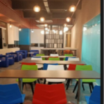 develop a design integrating the unused space left and was able to create an acoustically treated office as the office is behind the INOX theatres.