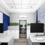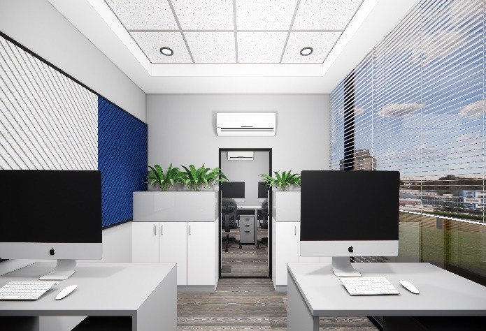 develop a design integrating the unused space left and was able to create an acoustically treated office as the office